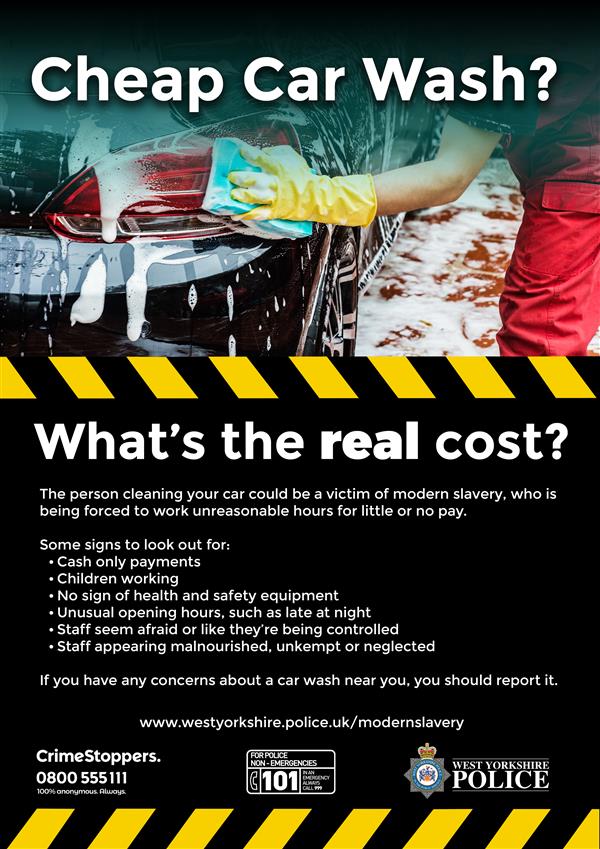 West Yorkshire Police has launched a new campaign to highlight the issue of modern slavery taking place in some car washes across the county.