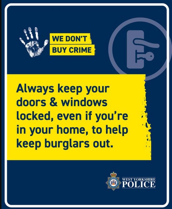 Burglary in Leaside Drive An alert from West Yorkshire Police. “Suspects attack lock on rear patio door using screw driver. Suspects then enter locus and take two sets of car keys and victim’s wallet. Suspects then exit locus via point of entry, and steal both cars from the drive way using keys taken from inside. There is lots of information on our website to help you secure your home including advice on lock standards. https://www.westyorkshire.police.uk/advice/home-security/home-security ” This happened around 2.40am on 12 August.