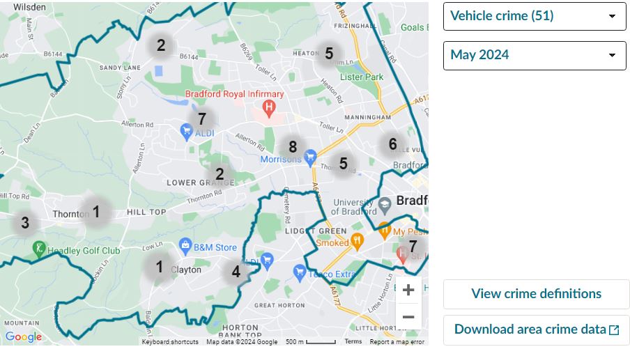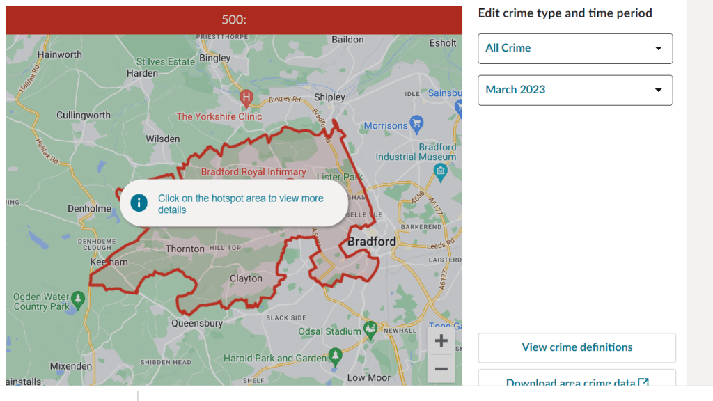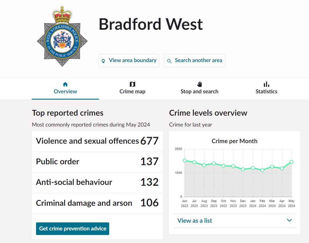 There are 2 ways of accessing the maps, either by going to the Police.uk website, or going to the Bradford West Neighbourhood Policing website.