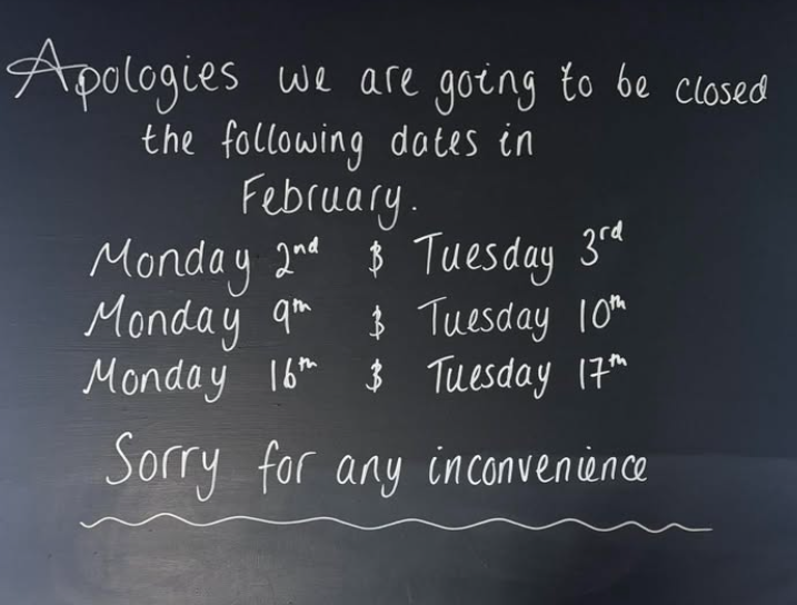 The White Horse Inn closed today, and some other dates, for getting things done and staff holidays. See poster