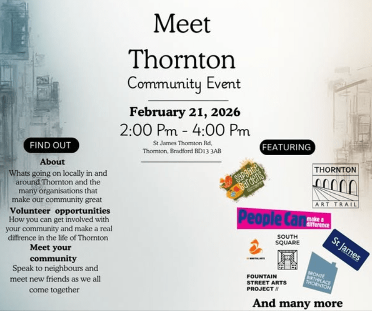 9.30 start till 11.30-ish but anytime between is ok. Great Northern Railway Trail Tidy Up team volunteers 2026, (on the Thornton to Queensbury section) Next session Tuesday 3rd February 10am on the trail by Thornton primary school towards/in the woods. New volunteers always welcome. Please message if you’d like to get involved. First Tuesday and Third Tuesday of each month. 9.30 start till 11.30-ish but anytime between is ok. On this day meet at the back of Thornton Primary School.