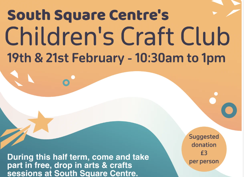 10.30am to 1pm Children’s Craft Club: “Join us for a free craft morning, a time to build, make and create!” Also on 19 February