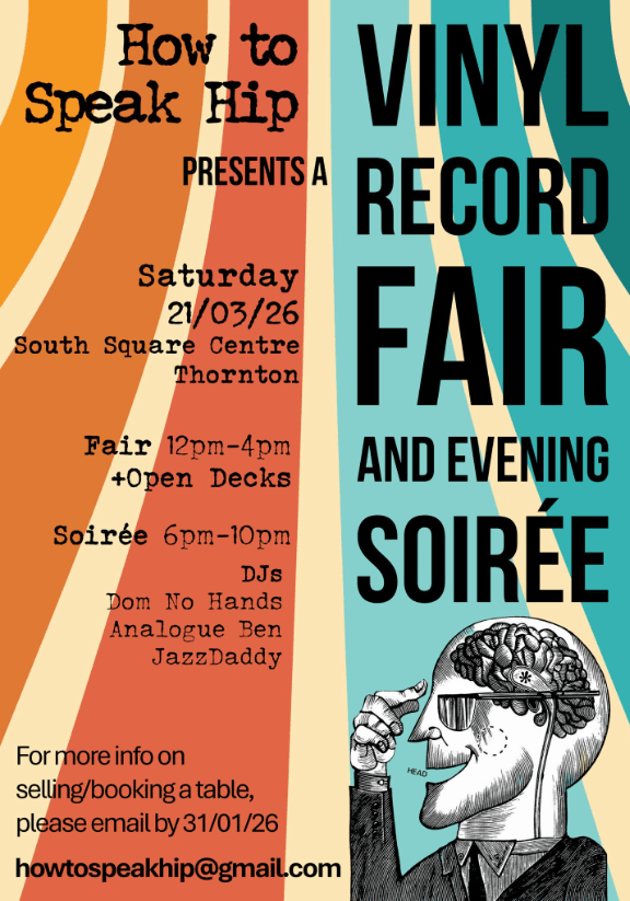 12noon to 4pm How to speak Hip’s Vinyl Fair and Open Decks at South Square – see poster, note also an evening event.