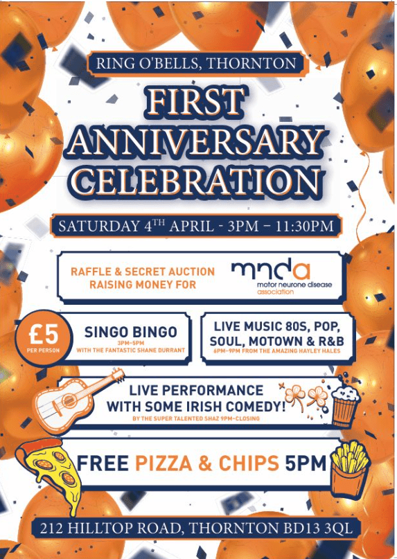 3pm to 11.30pm at the Ring o’ Bells, First anniversary celebration, see poster