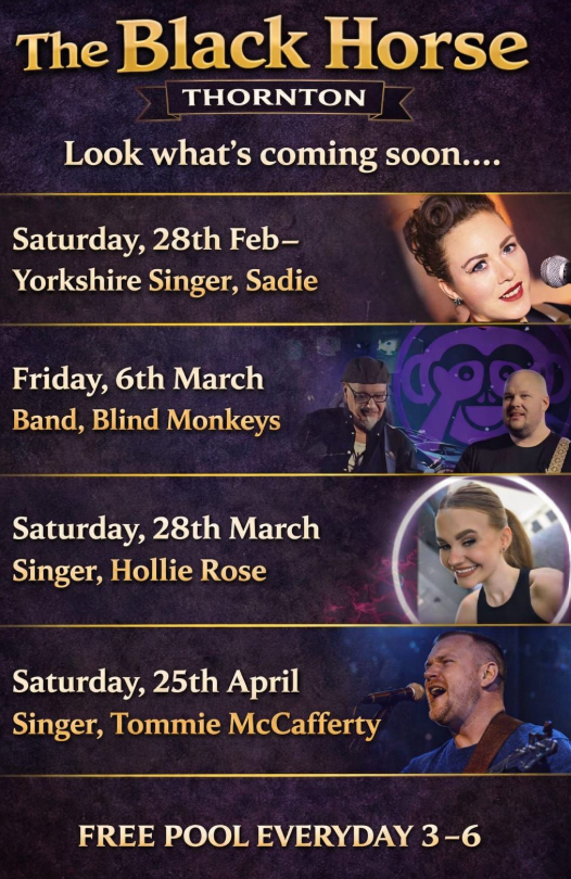 1:30pm for tea and biscuits, with speaker from 2:00pm. “Let’s go to the Local, part 2” a talk John Lyle by to Thornton Antiquarian Society. £3 admission which includes tea and biscuits. Everyone welcome, you don’t have to be a member.
