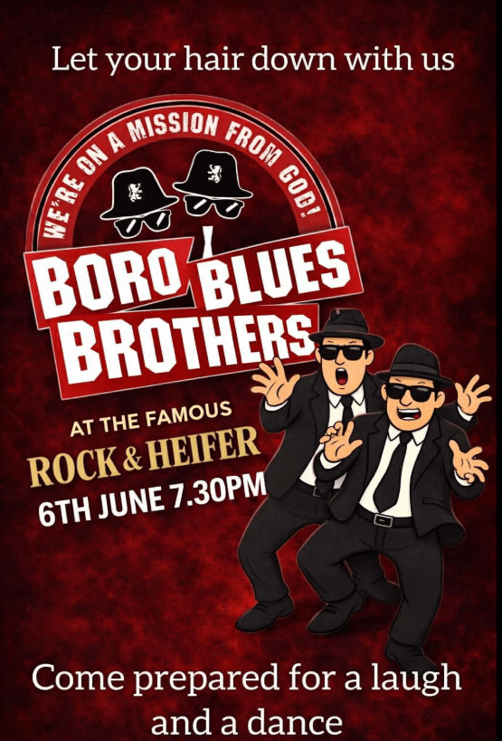 7.30pm Boro Blues Brothers at the Rock and Heifer – see poster