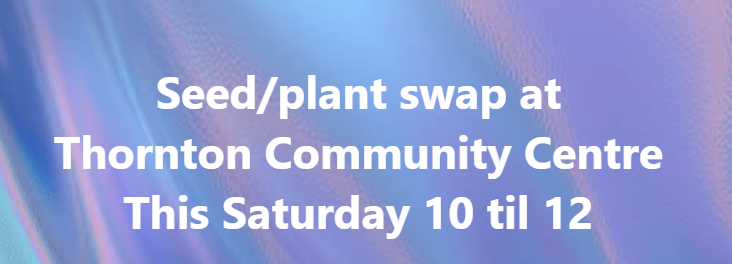 10am to 12noon Litter-Pick day, the 1st Saturday of the month, so let’s make Thornton that little bit tidier. As always the litter-pick is organised by Sapgate Gardens volunteers and run from the Community Centre (look out for the banner). Litter-pickers and bags are available as are warm drinks and biscuits. (If you can’t make it and have seen a particularly ‘grotty’ area, put a note up here and we’ll direct people to it). Thanks. As always, Kate’s ‘Pop-up Shop’ will be there, selling jams, marmalades, chutneys and honey, cards and dishcloths.