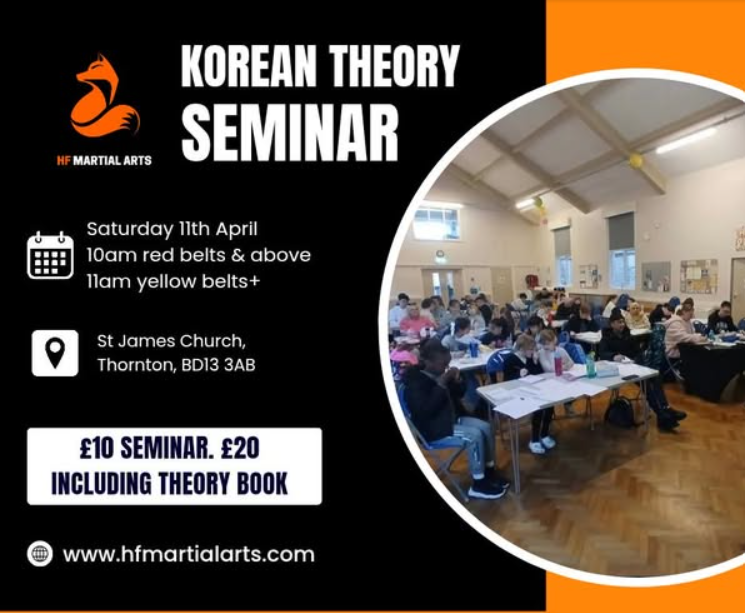 10am and 11am – see poster. HF Martial Arts Korean Theory Seminar