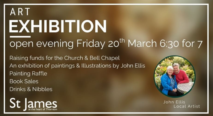 6.30pm for 7pm Open evening of Paintings and Illustrations by John Ellis at St. James Church – see poster