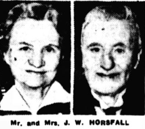 - 1951, December 4. The Bradford Observer reported that Mr. and Mrs John W. Horsfall had celebrated their Golden Wedding anniversary, stating that they had played an active part in the musical life of Bradford. It also stated that Mr. Horsfall had worked at Downs, Coulter and Co. ltd for 33 years before retiring 8 years previously, and that he was aged 75 and his wife 71.