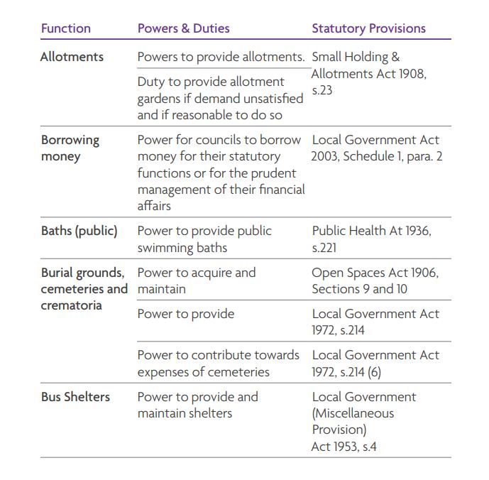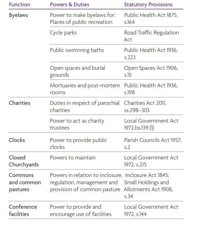 Parish and town councils are executive bodies which have statutory powers and duties. Each is expected to, and often asked to, voice the views of the community that they represent on planning applications, local plans and other issues. They also nominate members to represent the view of the parish on outside bodies and, in turn, report back on the business of the body concerned.