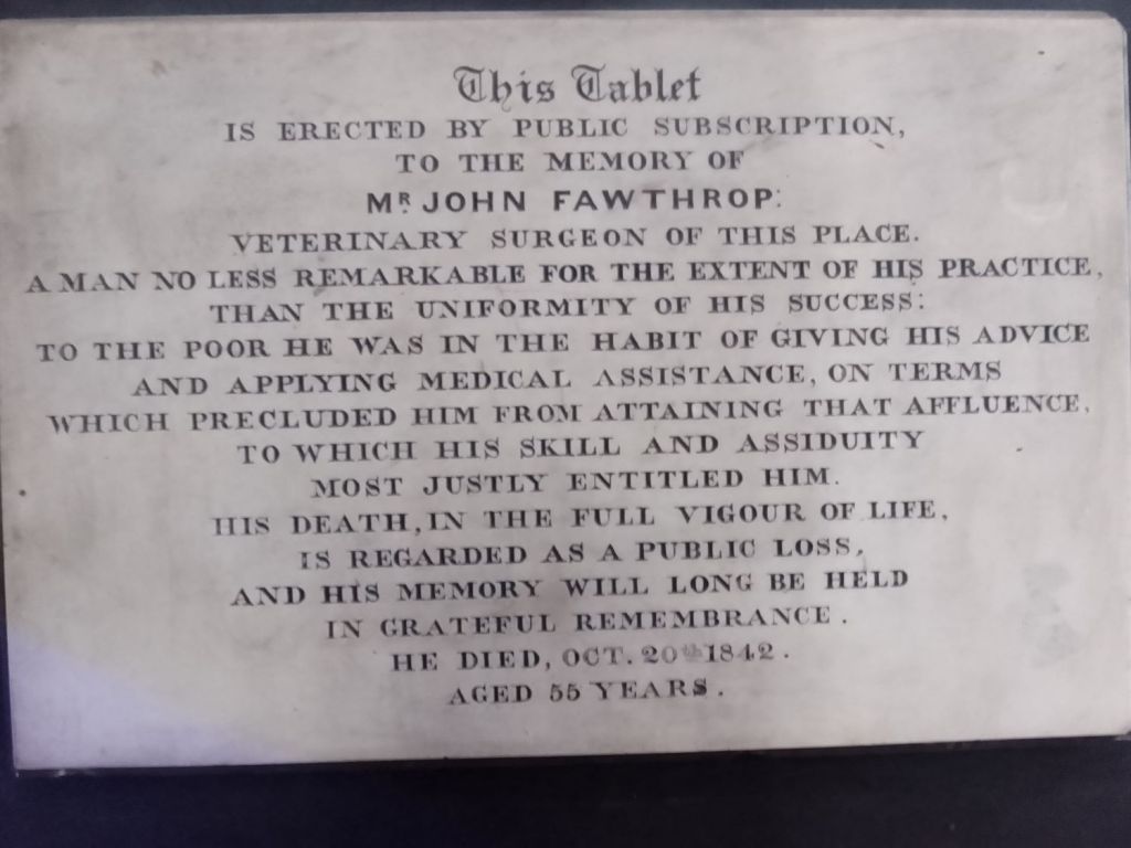 Fawthrop, John, born about 1787, died 1842. For further details of this Thornton resident, likened to the good Doctors of Whitworth, and praised on a tablet erected in the St. James “Bell” Chapel, in 1843. “click” here, or on his name at the start of this paragraph. (Updated 11 September 2023)