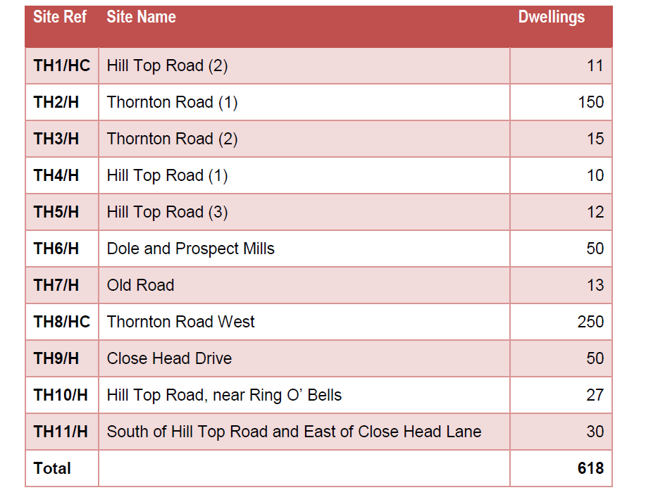 That download gives all the new proposed housing sites in Thornton, plus related information. Bradford Council consulted the public on their Draft, see here for further details. The final date for comments was 23:59hrs on Wednesday 24 March 2021.