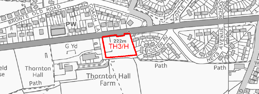 This site is owned by Bradford Council, and is immediately north of proposed site TH1/HC, for which they obtained planning permission in 2016 for 16 dwellings. While the permission has lapsed for TH1/HC, the principle of building dwellings there (TH1/HC), has been established. (Updated 13 July 2025)